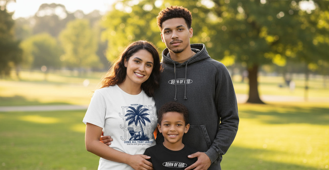 At Born of God Clothing, we believe that true style begins where faith takes root. Inspired by the timeless truths of Scripture, our collection of faith-inspired t-shirts transforms everyday wear into a powerful declaration of God's love, grace, and purpose. Founded on the vision of 1 John 5:1—"Everyone who believes that Jesus is the Christ has been born of God"—we're more than just apparel. We're a movement to reinvigorate the message of Christ through fashion, reminding you (and everyone you encounter) that you are fearlessly and wonderfully made (Psalm 139:14).