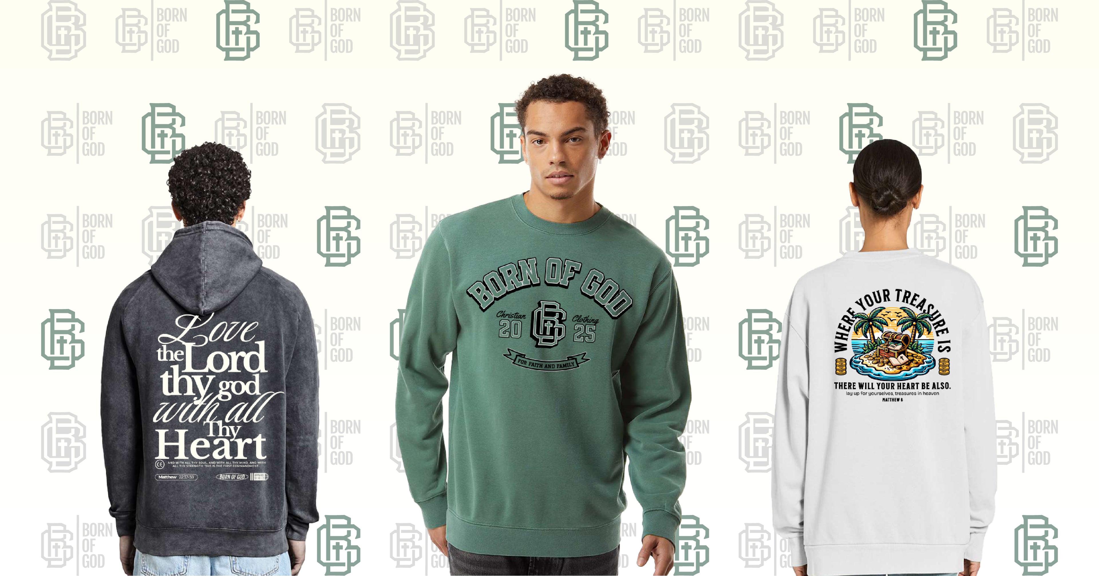 Discover the power of faith-infused fashion with our God-inspired printing company, dedicated to spreading the message of Jesus Christ to the world one garment at a time. Whether you're outfitting your ministry with uplifting designs, gearing up for youth camps that ignite spiritual growth, celebrating family reunions with heartfelt unity, or motivating sports teams with scripture-driven motivation, our custom gear brings your vision to life. Choose from high-quality hats, t-shirts, sweatshirts, hoodies, sweatpants, and socks, all personalized to reflect your unique story and purpose—join us today and wear your faith proudly, inspiring others along the way!